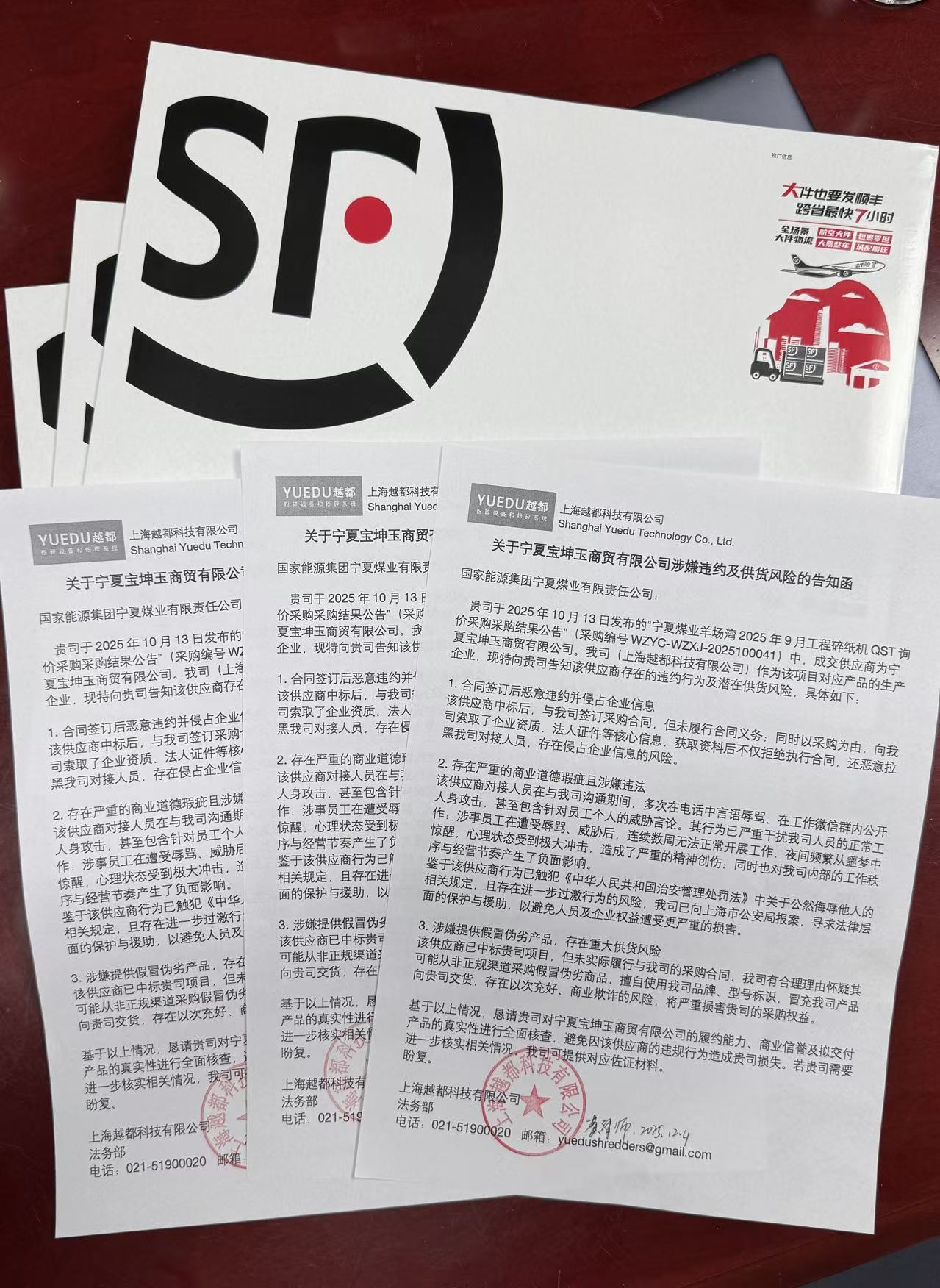 我司(上海越都科技有限公司)作為該項目對應產品的生產企業,現特向貴司告知該供應商存在的違約行為及潛在供貨風險,具體如下: